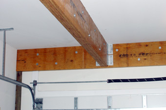 The additional floor joists were just the beginning of the floor-strengthening procedure, however. An approximation was made regarding the placement of the loudspeakers in the room so that that area could be heroically strengthened. The engineer specified either an LVL/microlam (laminated veneer lumber) or steel beam to be placed directly under the plane where the equipment would sit. Whether or not we used steel or lumber would depend on the logistics of installation. I would later find out that engineers like to make things as difficult as possible for the carpenters in the field. Note: don’t get the engineer in the same room as the lead carpenter. One might not come out alive. In the end multiple LVLs (5) were chosen because of lighter weight. My garage ceiling -- where the beams would be installed -- is 12’ high. Steel is heavier than wood, and the act of raising a steel beam and retrofitting it in a spot that wasn’t designed to accommodate it was daunting. It would be dangerous and unwieldy, whereas multiple LVLs would be just manageable.