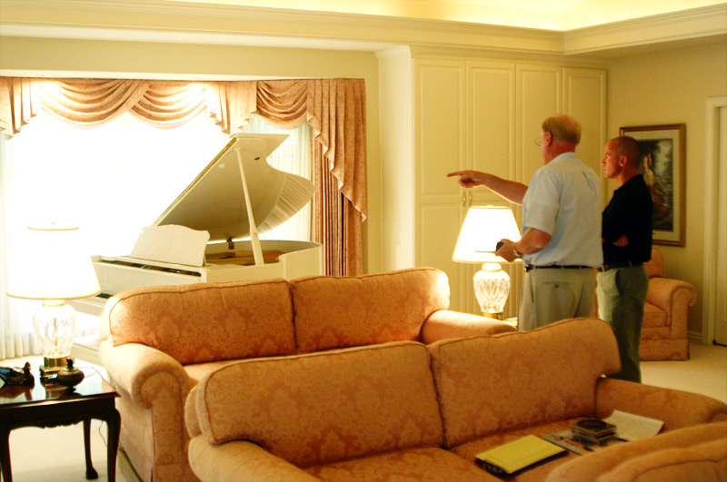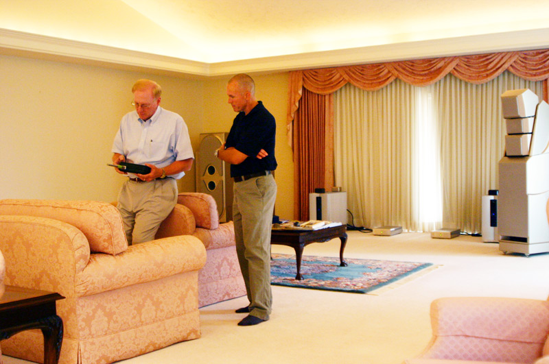 David Wilson (left) and Jeff Fritz in the listening room, behind them the